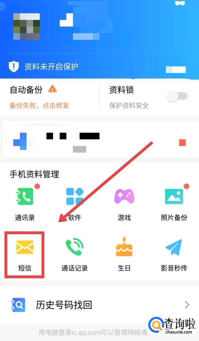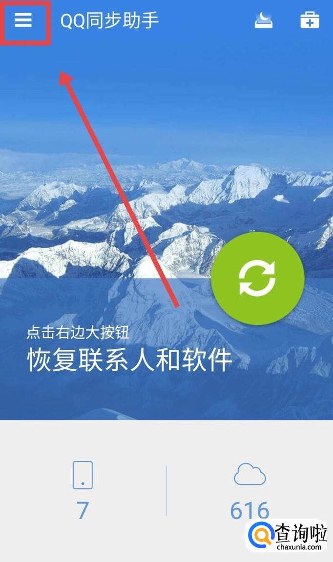 首先我们打开“QQ同步助手”,在左上角找到三条横线,点击进入。