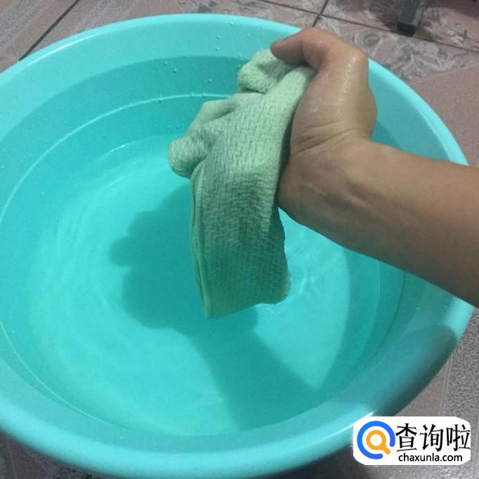 然后把要洗的毛巾放到水里面浸泡15分钟左右,如下图所示。