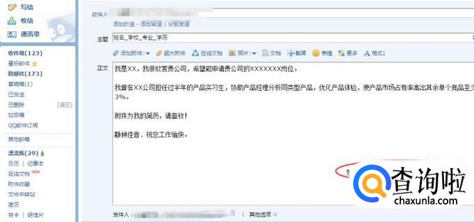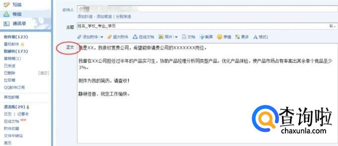 写明这封邮件的姓名_学校_专业_学历等,如下图所示: