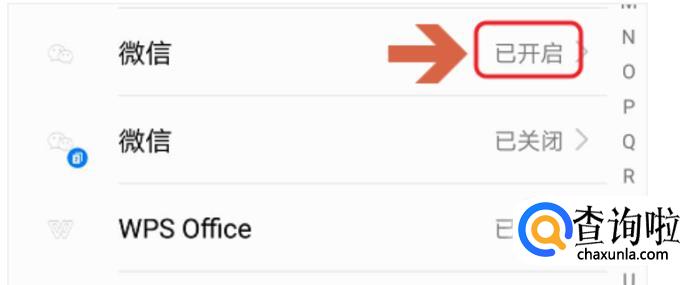 在通知中心中找到想要的应用例如“微信”。