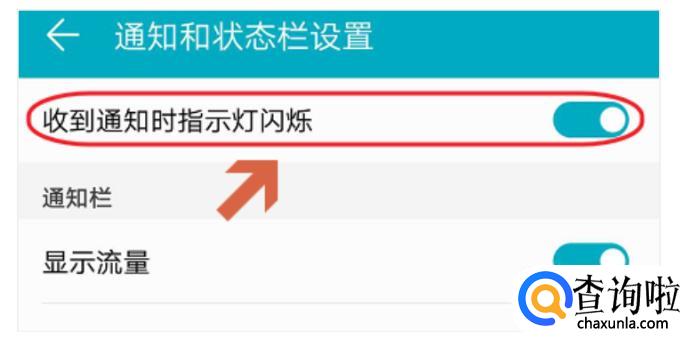 根据自身所需选择开启或关闭【收到通知时指示灯闪烁】功能。