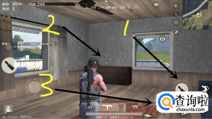 然后图中的1,2,3分别代表开始射击,瞄准准星,换子弹,当遇到敌人进行射击就好