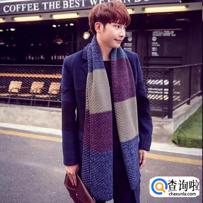 第一种,也是最简单的一种,直接将围巾搭在脖子上,可以让两端一样长,也可以使两端长短不一。这样围围巾对身高的要求比较高,最好是一米七以上,不然会给人一种矮小的感觉,反而不好看。