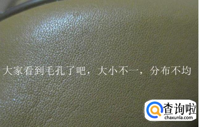 方法二是看。真皮的形状是不规则的,因为真皮为动物的皮毛,你用手指按下去的时候,发现它的毛孔是不均匀的。如果是人造皮的话,用手指按压后,毛孔它的形状是均匀的,感觉很自然。