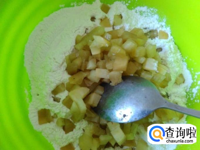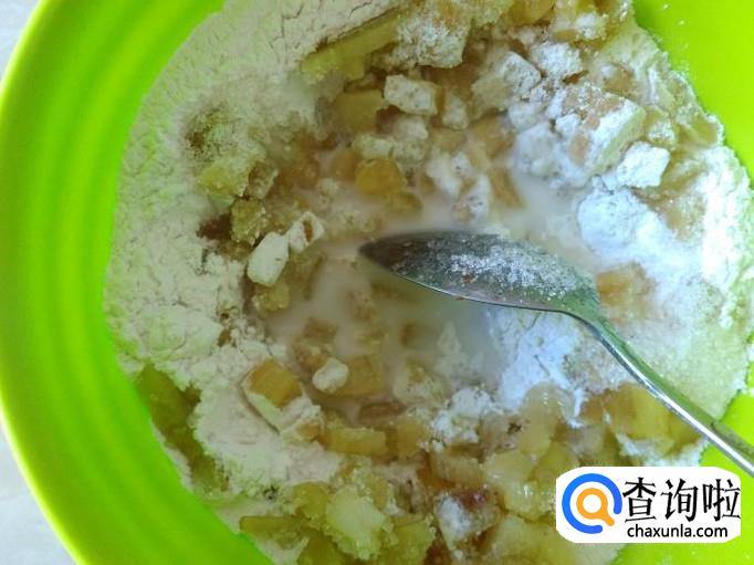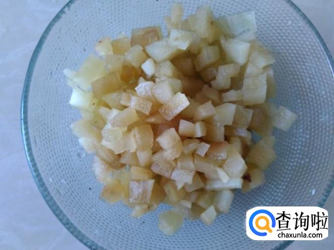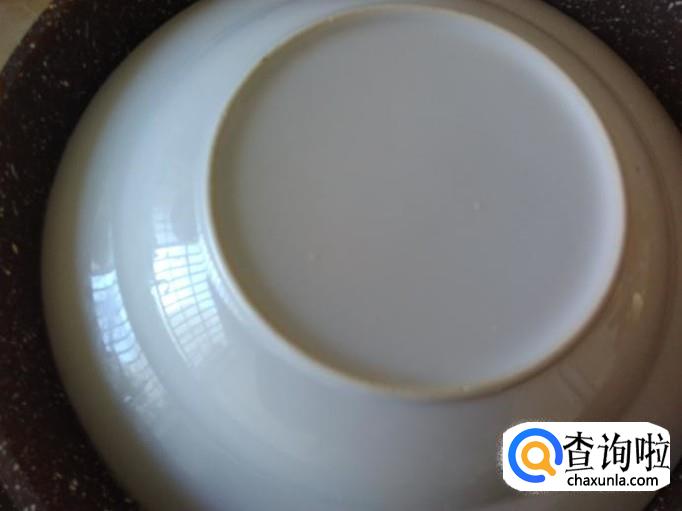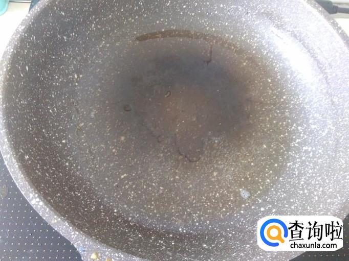 煎得4分钟左右,用盘子盖住糯米饼,压紧碟子,然后翻转平底锅。