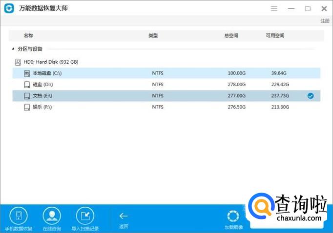 点击进入后选择要扫描的磁盘,照片是存储在E盘上去的话,那么就选择磁盘E进行扫描。