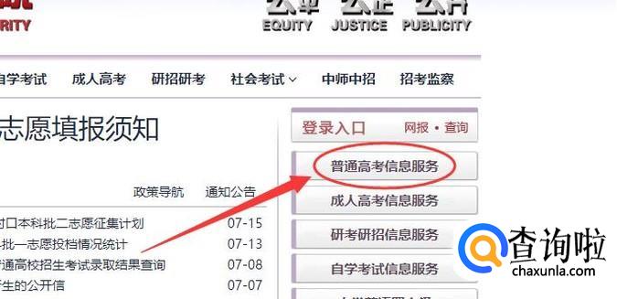 点击“普通高考信息服务”,进入下一界面,如图所示。