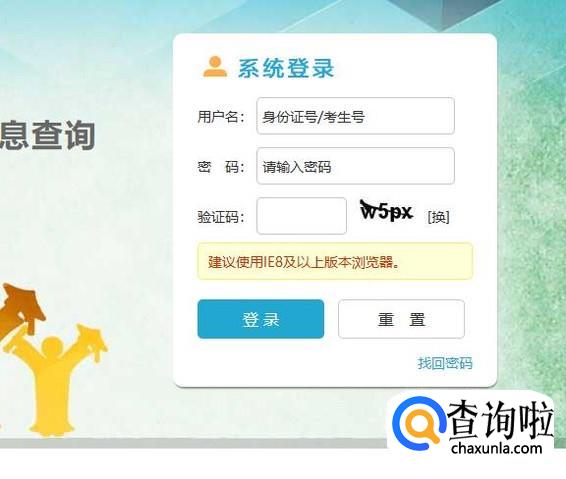 在系统登录栏中输入个人信息,点击登录即可查询到分数,如图所示。