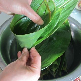 包粽子的叶子需要满足以下三个特点,第一是有清香味,第二要水煮后不破,第三是叶子面积大,这样才好包粽子。粽叶分多种,在我国乃至世界各地使用的种类各不相同,常见的为芦苇叶、箬叶、桂竹叶、月桃叶、芭蕉叶等。粽叶一般都拥有大量对人体有益的叶绿素和多种氨基酸等成份,其特殊的防腐作用也是粽子易保存的原因之一,气味芳香,闻之如有回归大自然的感觉。