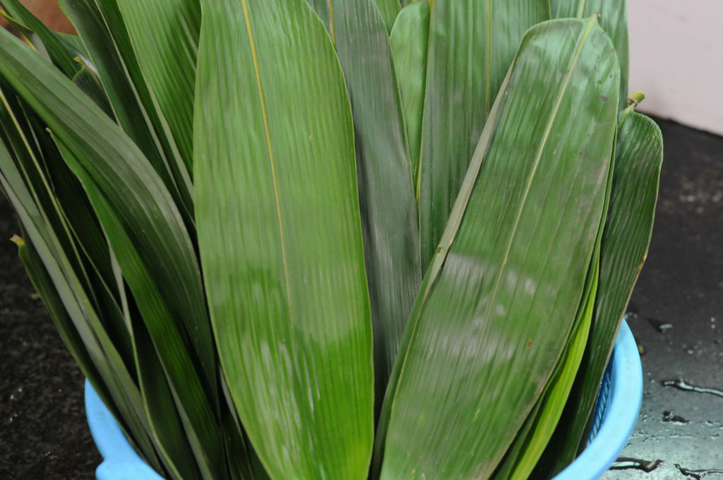 四、桂竹叶桂竹的竿粗大,竹材坚硬,篾性也好,为优良用材竹种。竹秆可供建筑、棚架用或用撑篙、农具柄、扁担、旗杆,竹篾较水竹和淡竹硬脆,可编晒席、篓等,也是优良的绿化树种。五、月桃叶月桃别称艳山姜、良姜、虎子花等,为姜科月桃属草本植物,原产于印度及中国南方各省,喜温暖、湿润、半荫的环境,叶鞘含纤维可制绳索。六、芭蕉叶芭蕉是芭蕉科芭蕉属多年生的草本植物,原产琉球群岛,叶纤维为芭蕉布(称蕉葛)的原料,亦为造纸原料。七、荷叶荷叶为睡莲科植物莲的叶,产于湖南、福建、江苏、浙江、南方各地。