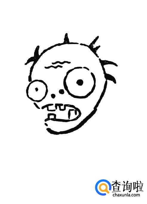 画出僵尸的毛发、抬头纹和几颗牙齿。