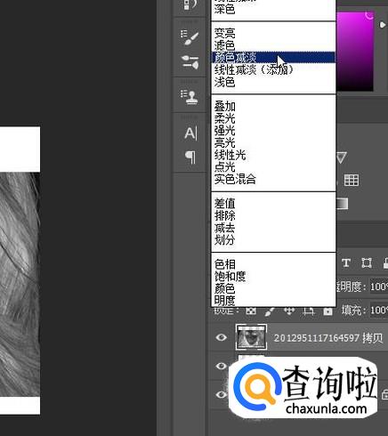 然后,把已去色的图片层CTRL+J ,复制一层。在这复制层上,执行反相命令。反相后,再把图层混合模式设置为颜色减淡。
