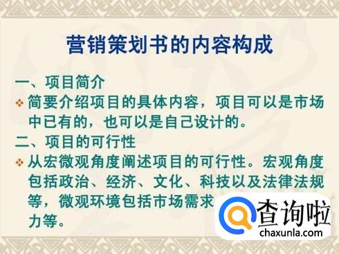 一般目录要简明有序,并按内容编排,并插有页码,单独成页。让人可以提前知道大概内容。而没有目录的策划书则会使读者认为一团糟。