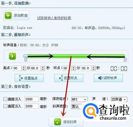 最后裁剪歌曲的长短并点击保存铃声就可以了。