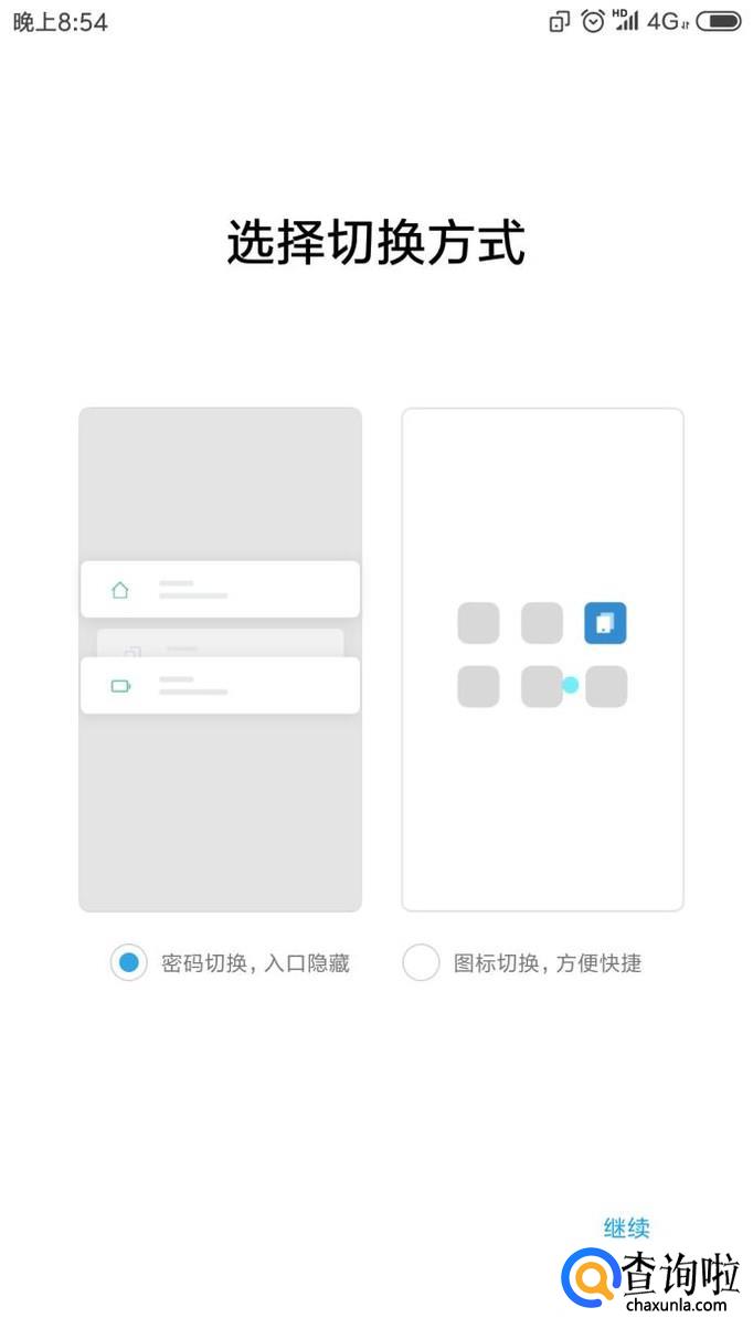 进入选择切换方式的页面,一种是图标切换,一种是密码切换,可以根据需要选择