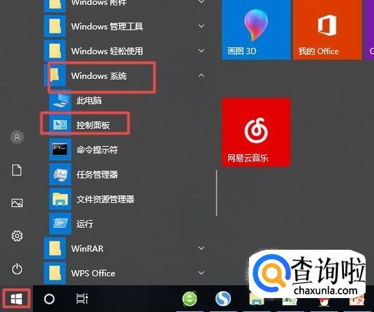 首先,我们点击左下角的微软按钮,弹出的界面,我们找到windows系统,点击打开它,然后我们点击控制面板;