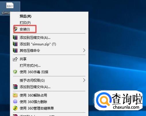 粘贴完成后,我们右击该字体的安装程序,弹出的界面,我们点击安装,这样就可以解决这个问题了。
