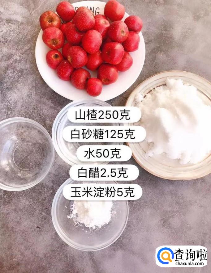 食材:山楂250克,白砂糖125克,水50克,白醋2.5克,玉米淀粉5克。