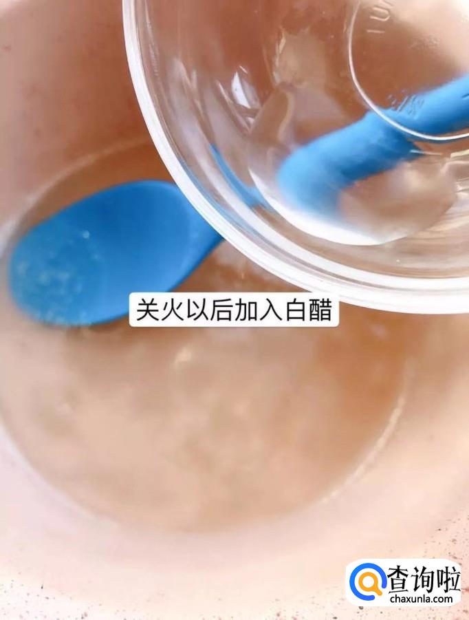 加入白醋以后搅拌均匀晾凉,如下图所示。小贴士:晾凉的过程大概两到三分钟左右就可以了。
