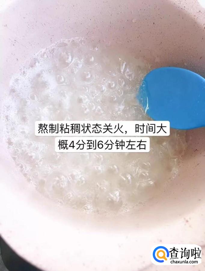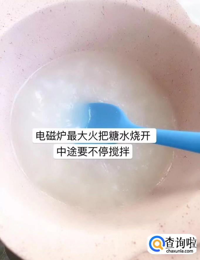 等到锅中的糖水熬至粘稠状,就可以关火了。小贴士:一般情况下糖水熬到这种状态,一般需要四到六分钟左右。