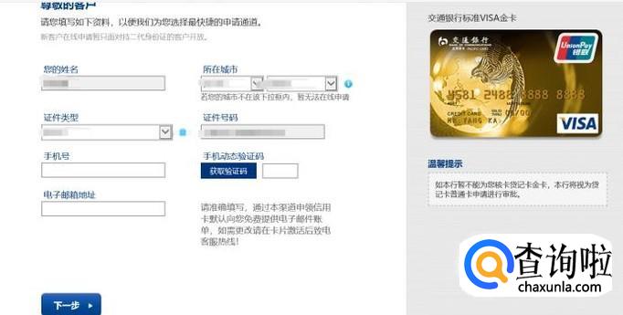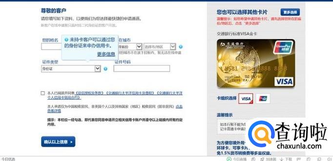 这里面有许多家银行的银行卡供我们选择,这里我们选择其中最牛的银行卡,交通银行的凤凰卡。