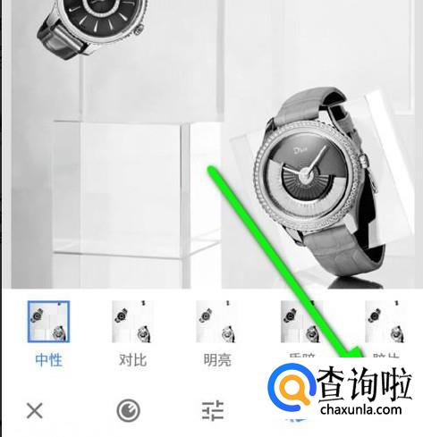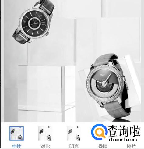 手指点一下“黑白”,进入到“黑白”的设置界面;我们可以看到彩色照片已变成了黑白效果了。当前默认的黑白样式是“中性”。我们也可以根据自己实际要求选择其它样式的。在本文中就按默认的"中性”这种样式就好了。