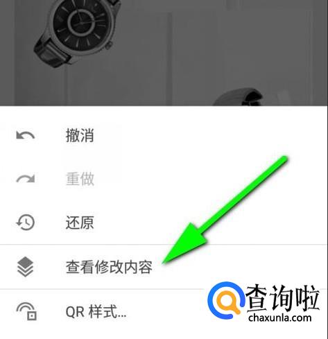 我们看界面的右上方这里,这里有一个按钮,如下图箭头所指的按钮。手指轻点一下此按钮。在界面的下半部分弹出一列菜单。从这列菜单中点击“查看修改内容”。