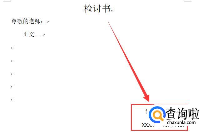 写上检讨人的姓名和所在工作单位并落上日期,如图所示。
