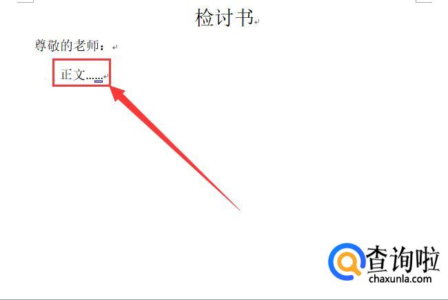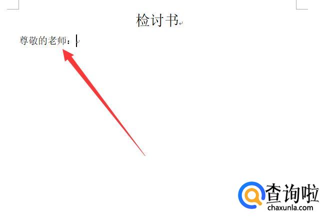 在文章的头一行写标题,也可以在标题中注明是关于什么错误的检讨书,如图所示。