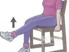 坐位伸膝训练:坐在椅子上,先将双脚平放在地上,然后逐渐将左膝伸直,并保持直腿姿势10秒钟左右,再慢慢放下,再换另一只脚;并且双腿交替进行,重复练习20次左右。