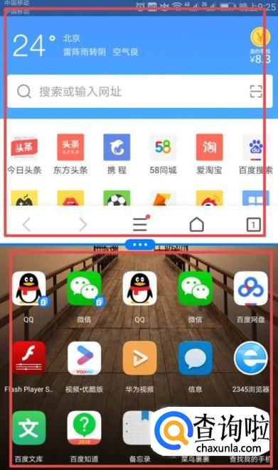之后我们就看到手机桌面处于分屏状态了,此时我们两个界面都是可以操作的;