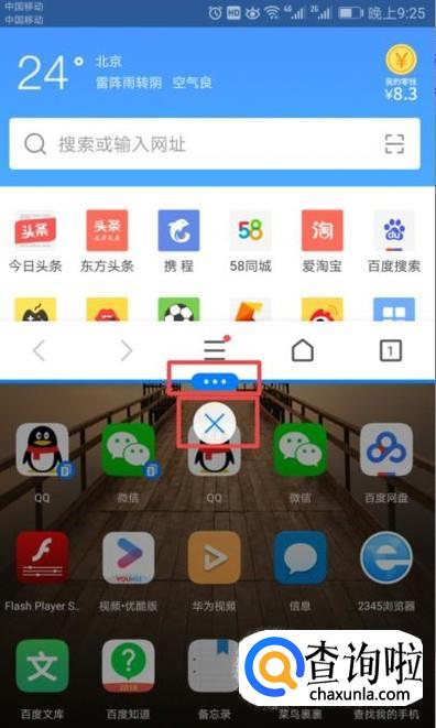 如果我们想退出分屏界面的话,我们点击图示中的位置,弹出的界面,我们看到是个关闭按钮,我们点击关闭按钮就可以了。