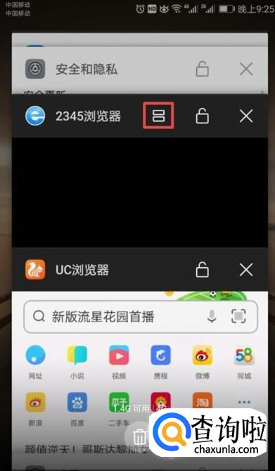 弹出的多个界面,我们点击分屏按钮;