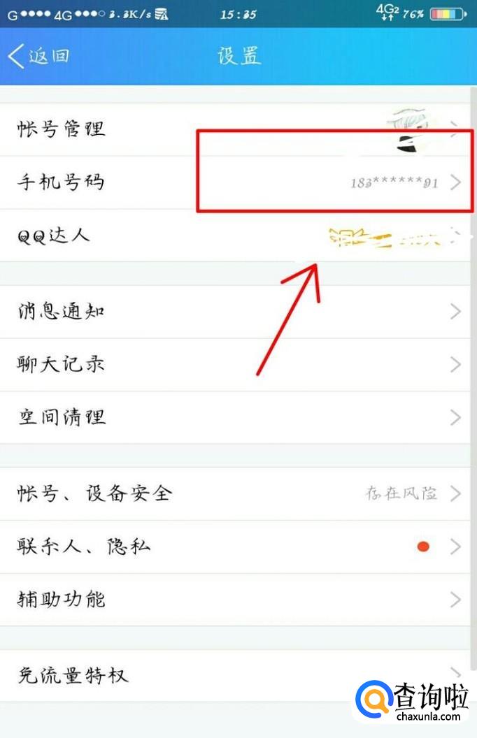 接着我们可以在设置中看到手机号码,点击进入手机号码,如图所示。