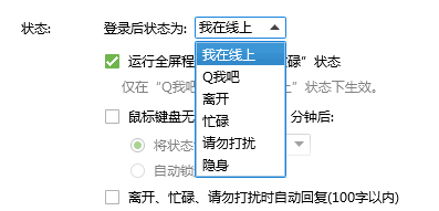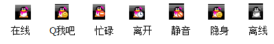 QQ聊天状态分为7种:我在线上、Q我吧、离开、忙碌、请勿打扰、隐身、离线。