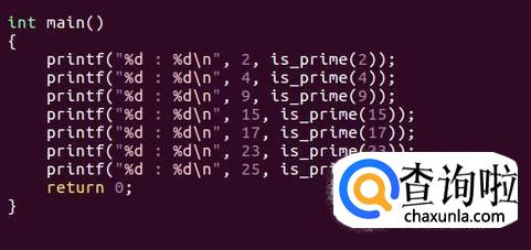 接下来,我们使用主函数进行测试,使用printf("%d : %dn", n, is_prime(n))的格式进行输出。如果输出结果为0,说明不为素数;结果为1,说明是一个素数。