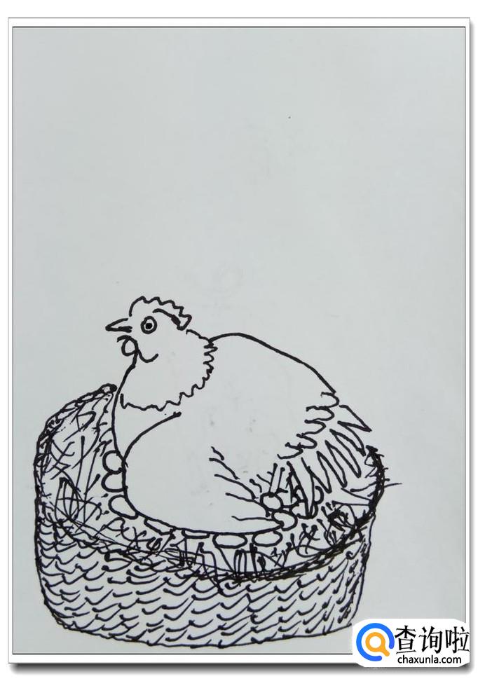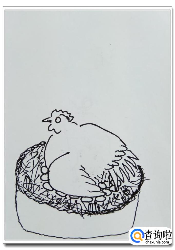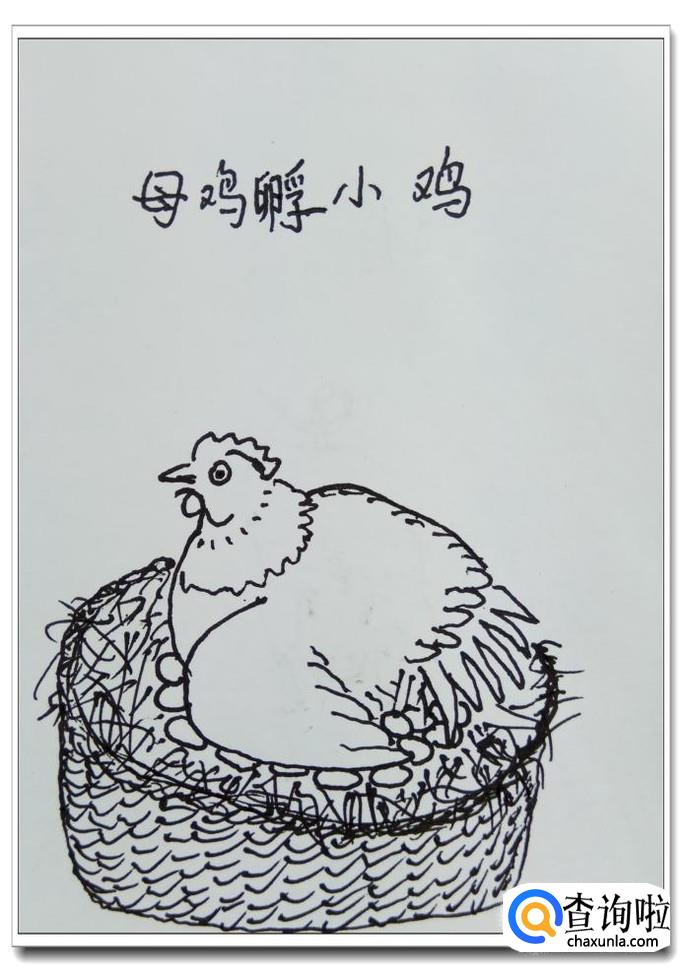 怎样用钢笔画“母鸡孵小鸡”?