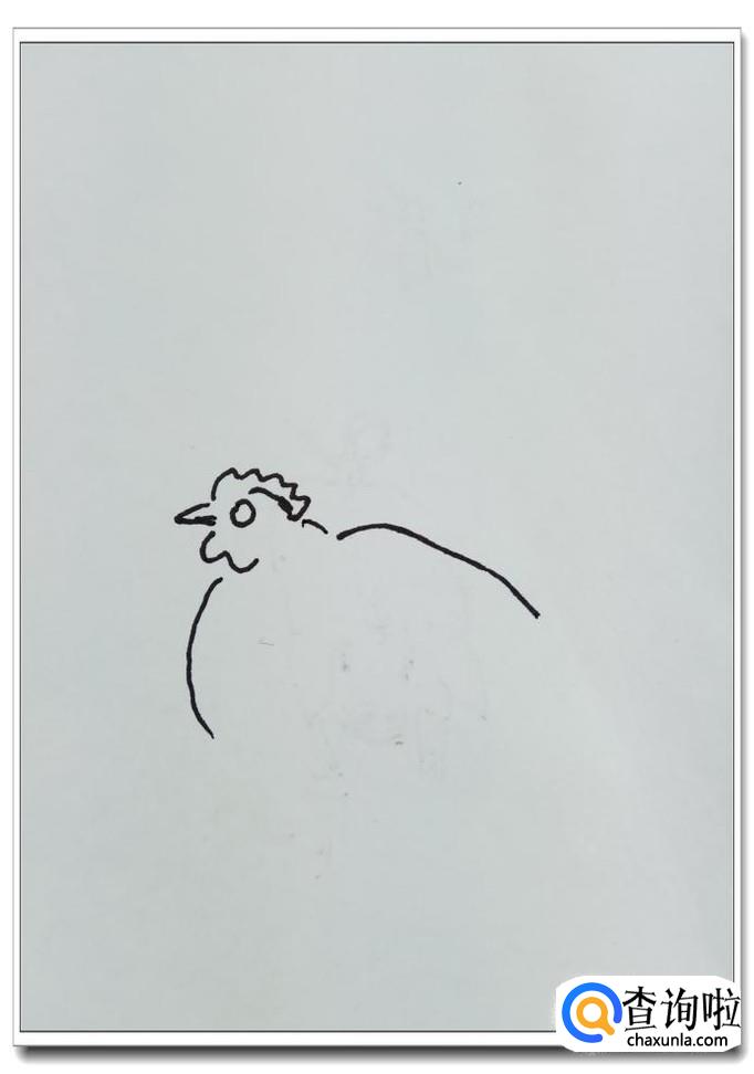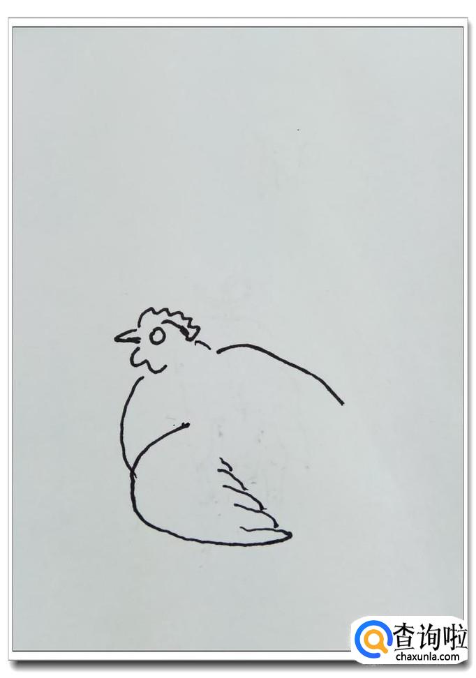 用两条弧线画出鸡的背部和腹部,这个母鸡是蹲着的,注意一下弧度的位置。