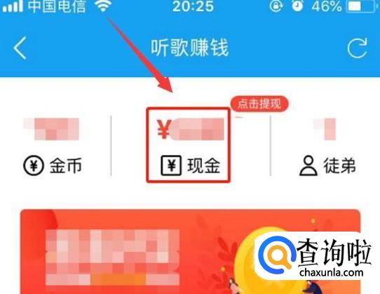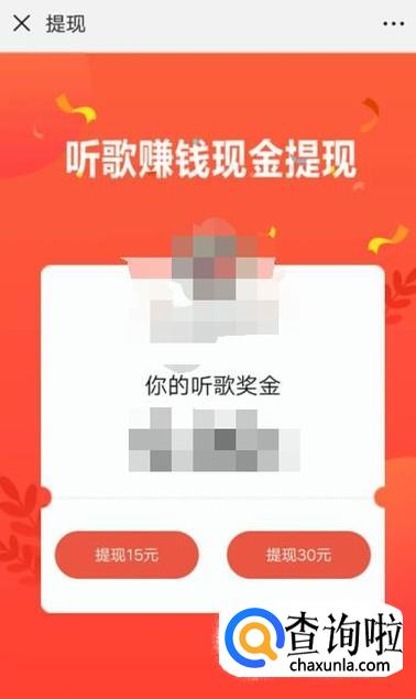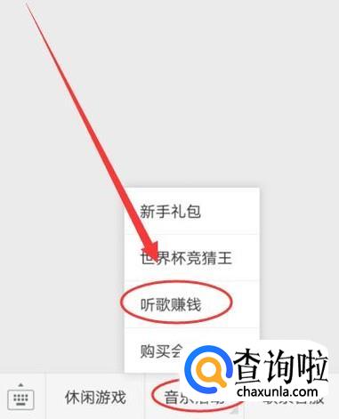 进入之后,点击“听歌赚钱”,进入下一页面,如图所示。