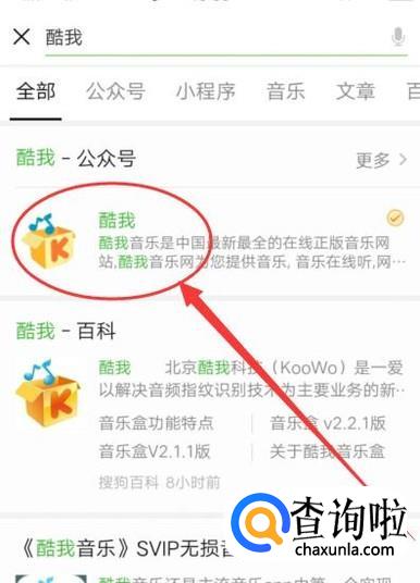 在微信搜索酷我公众号,点击并关注,进入下一页面,如图所示。