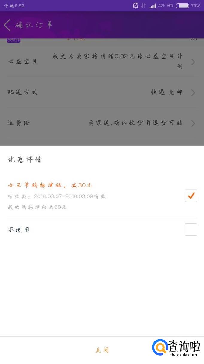 然后点击购物津贴进行勾选,然后就满减成功了