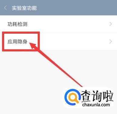 在“实验室功能”页面,选择“应用隐身”,如图所示。