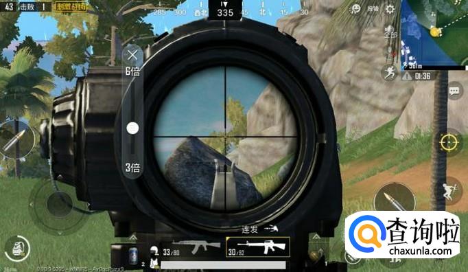 装备好之后,拿上装有六倍镜的枪,然后点击右边的开镜按钮。