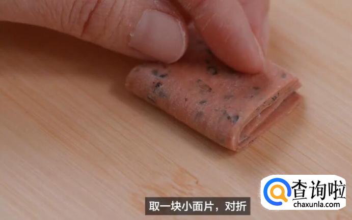 取一小块面片,对折。