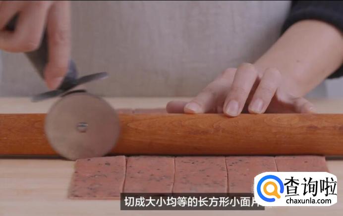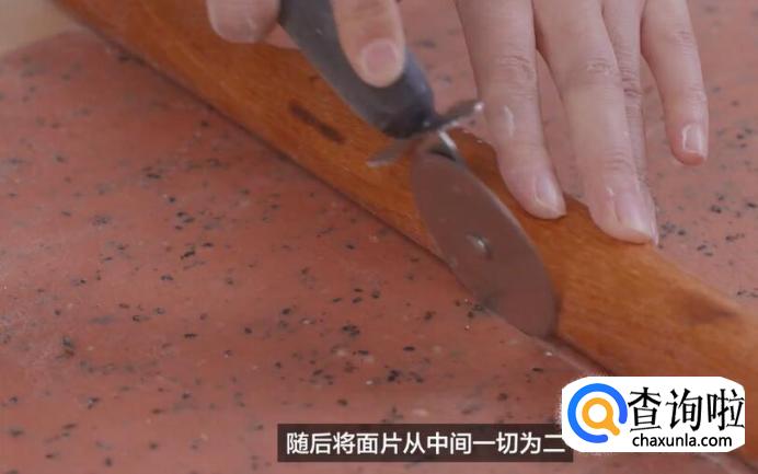 把两个面片叠在一起,切成大小均等的长方形小面片。