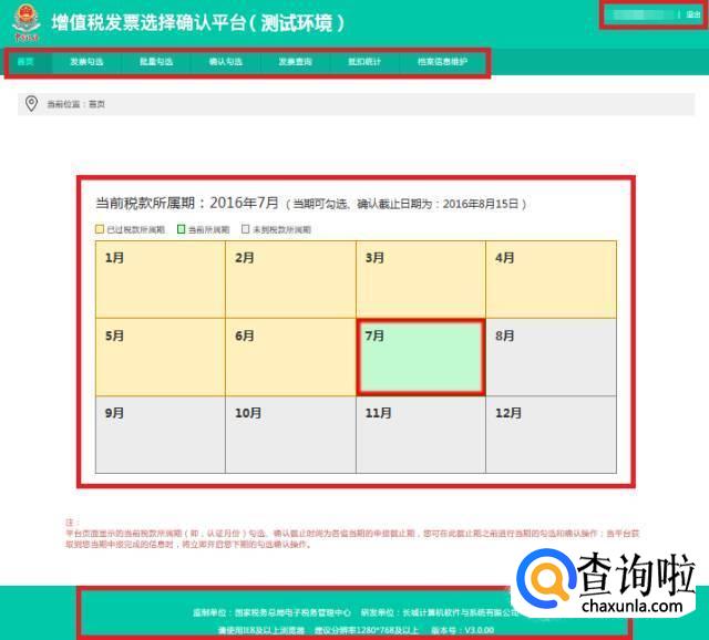 登入后,会转入到下图界面,页面主要信息分为4块:发票勾选、批量勾选、确认勾选、确认查询等功能菜单。在正中间,我们会看到之前的发票勾选情况。同时,我们会注意到它有三种颜色:橙色,绿色,灰色。三种颜色代表着三种业务状态。