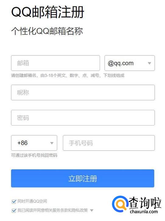 输入信息,注册一个QQ邮箱账号。