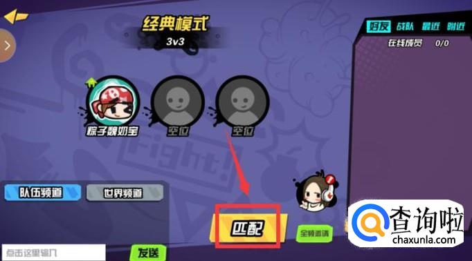 【经典模式】的页面,都是3V3的,可以邀请好友一起玩,要是新手没有好友,可以点击下方的“匹配”,系统就会自动匹配其他玩家一起玩。