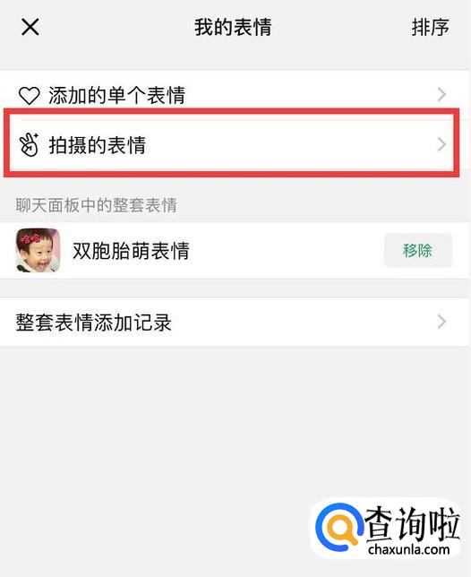 点击“拍摄的表情”。