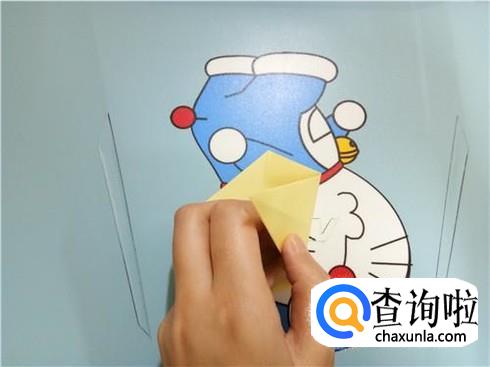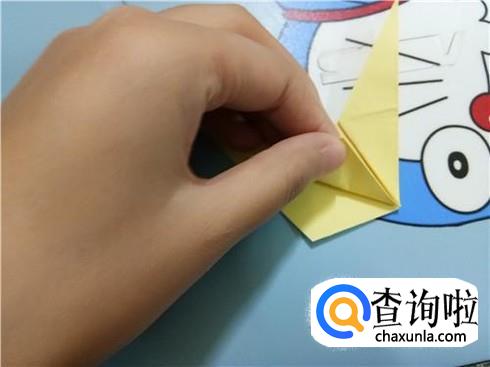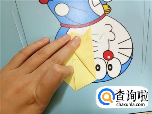 然后,我们将右边比较小的角折叠到与另一个角重合。
